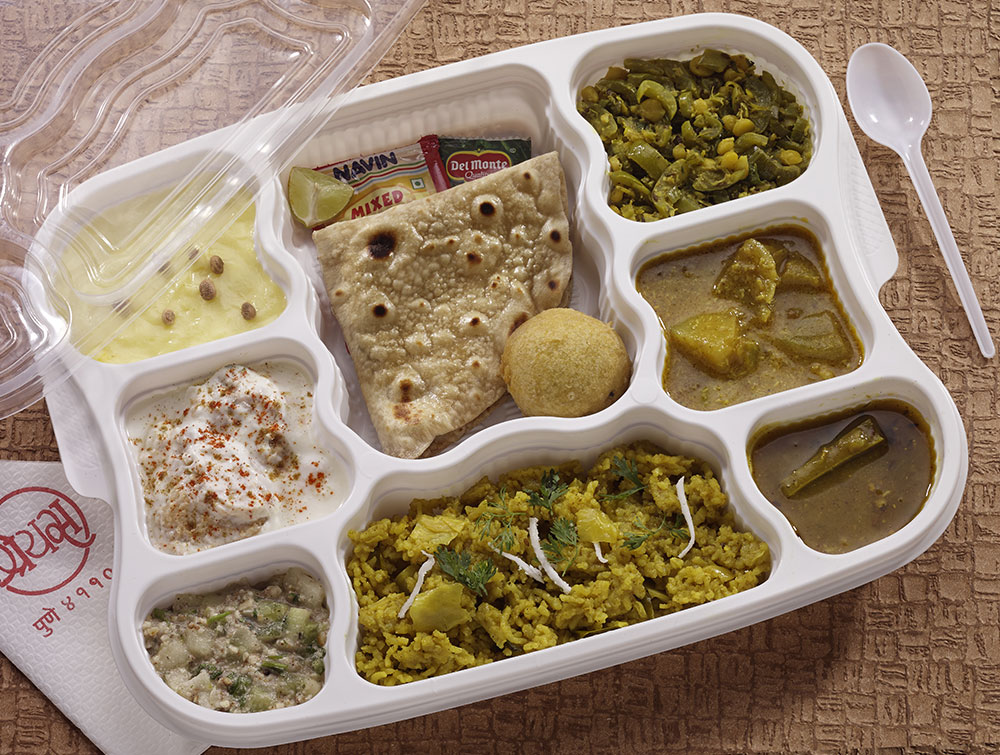 We also provide packaged tiffin service offering two types – Economy Tffin and Special Tiffin. Food is served in disposable food trays specially designed for tiffin.